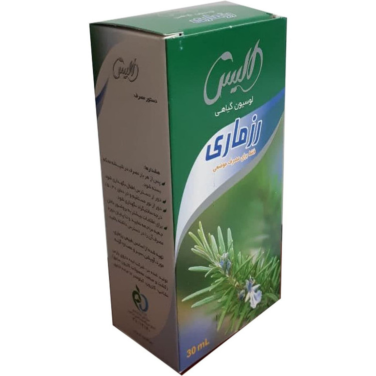 لوسین رزماری الیس گیاهی بوده ومصرف موضعی دارد، یک عدد قطره چکان همراه لوسیون در جعبه است.