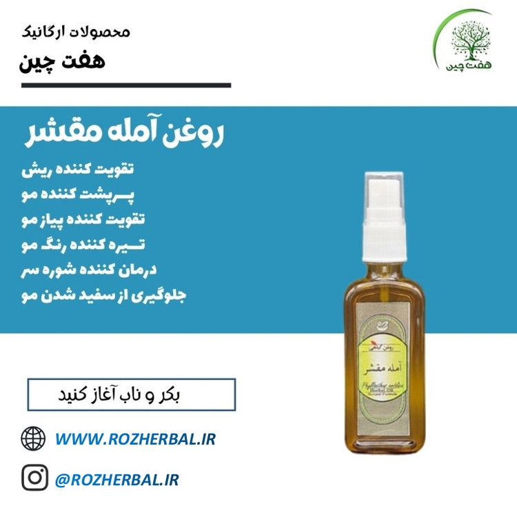 روغن آمله و تقویت مو : این روغن از جمله روغن های پر مصرف جهت درمان ریزش مو و شوره سر است. آمله منبع غنی از ویتامین Cو انواع آنتیاکسیدانهای طبیعی است که با ماساژ این روغن بر روی سر می توان فولیکول ها را تقویت کرد . گیاه آمله حاوی ۹۲ درصد ماده کاتازیمون است کاتازیمون یک ترکیب ارزشمند می باشد که شرکت های محصولات زیبایی و درمانی اروپایی تحت عنوان روغن تقویت کننده مو استفاده می کنند.برای بهره گیری از خواص آن ، تنها کافی است هر شب چند قطره از آن را روی پوست سر خود ریخته و ماساژ دهید . این روغن باید مدت ۸ ساعت روی موهای شما باشد .